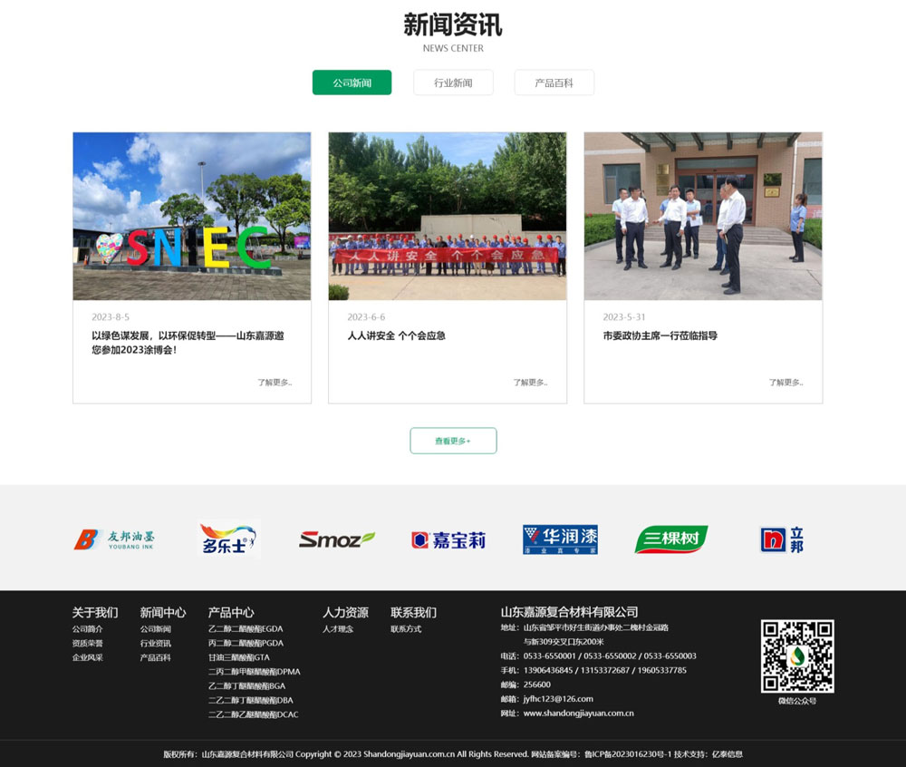 山东嘉源复合材料有限公司始创于2003年,厂区占地面积20000平方米,历经二十年的风雨兼程和顽强拼搏,至今已发展壮大为一家集研发、生产、销售为一体,专业生产高端醇酯类环保溶剂的化工企业,根据市场和客户要求,对主营产品乙二醇二乙酸酯、丙二醇二乙酸酯、二丙二醇甲醚醋酸酯等环保型溶剂进行差异化产品创新,深入提高产品质量,以国际化思维和全球化视野进行延伸发展,在化工领域推动产业升级变革,以“品质上乘、服务到位”而享誉海内外,在行业中具有较高的声望,吸引了诸多国际知名企业的关注与合作。产销量逐年上升,为地方经济的发展贡献绵薄之力。 历年来,本企业以:“企业与时代共同前进、企业与客户共创价值、企业与员工共同发展”的核心价值观,以“专注品质,用心服务”为经营理念,与客户达成共赢。依靠科技提高、强化管理,坚持走质量兴业之路,先后获得《年度经济发展先进企业》、《明星企业》、《重服务守信用企业》、《质量服务诚信单位》、《诚信经营示范单位》等光荣称号。 诚信立业,实力保障,在坚持技术创新的基础上,狠抓质量管理,不断提高服务水平,实现了公司业务的良性发展,先后斩获《科技型中小企业》、《滨州市“专精特新”中小企业》两项殊荣,具有两套专业化生产设备,近二十年的市场经验,已建立完善的售前、售中、售后服务体系,为客户生产过程中遇到的问题提供参考指导,赢得了国内外客户的信赖与好评。 发展的同时,更致力于为员工提供实现梦想的舞台,向实现人性化管理积极靠拢,把激发员工的积极性和上进心作为管理工作的核心,培养了一支精英管理团队以及稳定而又经验丰富的生产员工队伍,具有竞争力的薪酬体系,关注人才,吸引人才,留住人才,加强人才梯队的建设,确保人力资源充足,降低企业管理成本,实现企业与员工的互利共赢。 展望未来,我们始终倡导以市场为导向,以科研为龙头,以创新为手段,用心开拓国内外市场,坚持规范经营,稳定发展,在稳定中求机遇,在变革中求发展,不断优化项目,提升管理水平。山东嘉源复合材料有限公司将秉承初心,为化工行业内增添新绿色提供有力的支撑与服务,不断将绿色环保型产品贡献社会,与社会各界优势互补,共创辉煌。